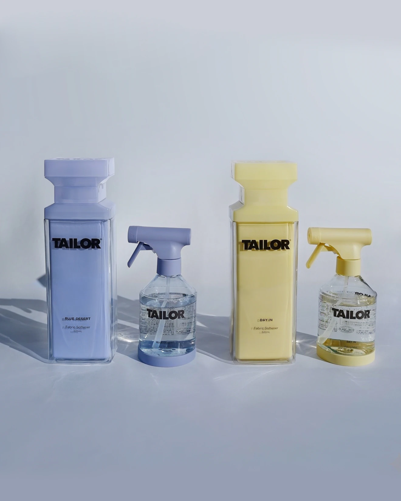 ブランド名の由来は、“仕立てる”ことを意味する「テイラー」。単に香りをまとわせるだけでなく、シワやヨレを防ぎ、繊維を整えることで、衣服やタオルをなめらかな肌触りへと仕立てる柔軟剤です。日常的に身にまとう衣服や、暮らしに欠かせないタオルを、長く大切に使い続けたくなる存在へ。機能性と心地よさの両面から、日々のケアを支えます。パッケージは、生活空間に自然と馴染みながらも、あえて“見せたくなる存在”として設計。従来のように隠すものではなく、インテリアの一部として置ける佇まいを目指しました。ロゴではカジュアルで手に取りやすい印象を、容器形状や質感では丁寧に仕立てられた上質さを表現。日常の中でさりげなく気分を高めるプロダクトとしてデザインしています。