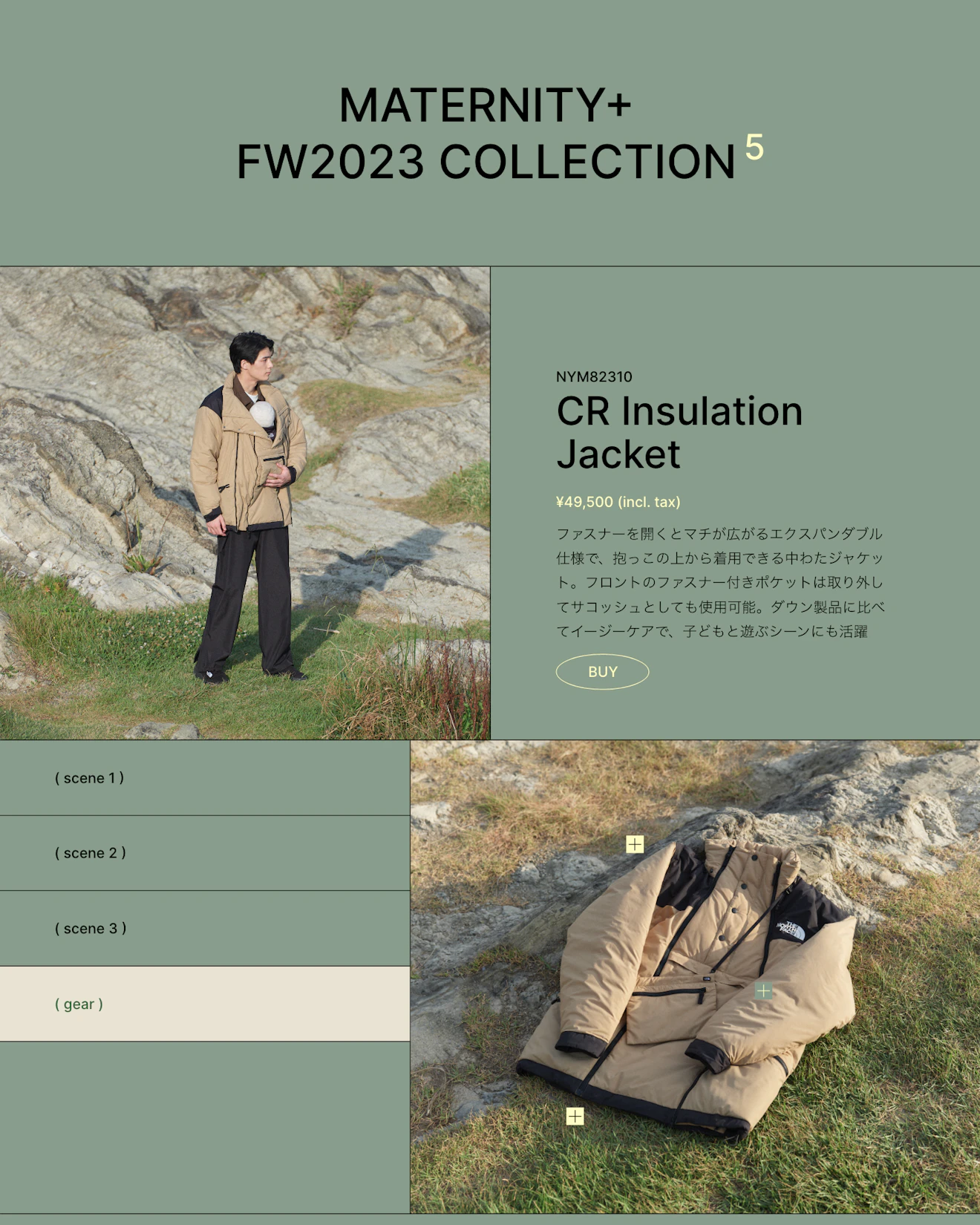 THE NORTH FACE MATERNITY+ 2023 FWのアートディレクションとWEBデザインを担当しました。出産というライフイベントは、人生の中で限られた時間であり、マタニティウェアは短期間で役目を終えてしまうことが多いと思います。その一過性に対し、衣服の持続性という視点から、THE NORTH FACEのマタニティウェアは、パーツの着脱によって通常のウェアとしても着用可能であり、マタニティ期に限らず、その後の生活にも自然に馴染む設計となっています。その「長く使い続けられる機能性」を軸に、ライフステージを横断する衣服としての価値の表現を目指しました。ビジュアルでは、ブランドが持つアウトドアの機能性やタフさに、マタニティ特有のやわらかさや包容力を掛け合わせ、さらに構造的な魅力を引き出すためにギークな要素を取り入れました。プロダクトの機能を視覚的に解体・再構築することで、衣服の変化と拡張性を印象づける撮影・デザインを展開しています。